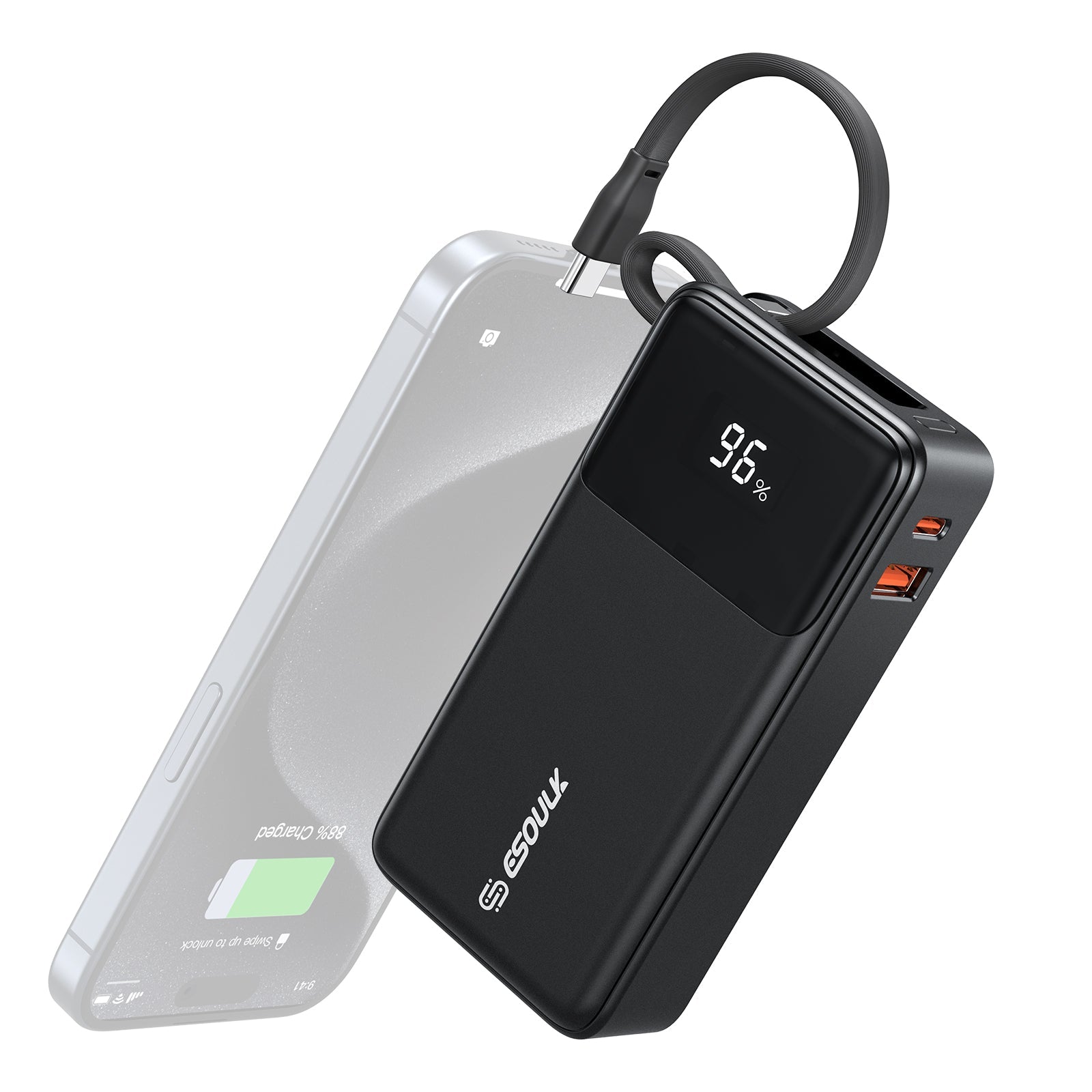 10000mah 30W Bulit-In USB-C Cable Power Bank