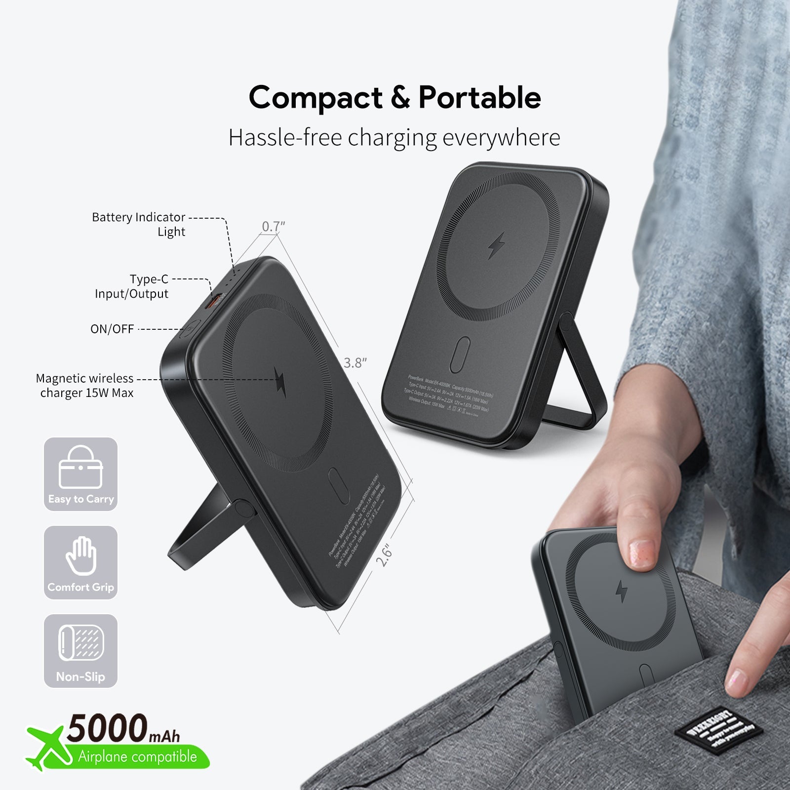 5000mAh Magnetic 15W Wireless Charge Power Bank
