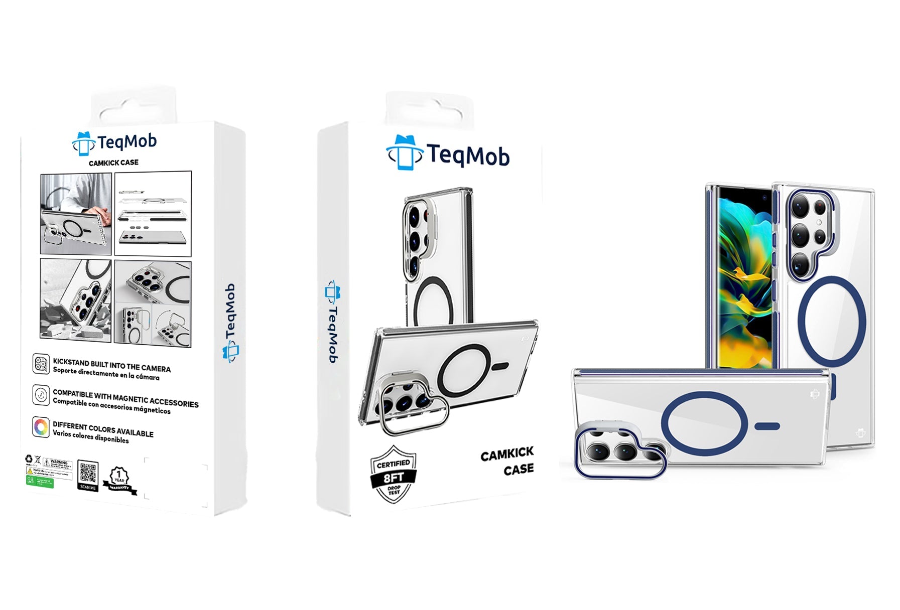 Blue Camera Kickstand Case with Magnetic Compatibility for Samsung Galaxy S24 Ultra with package