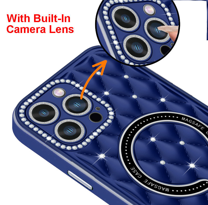 Blue Deluxe Quilted Case for iPhone 15 Pro