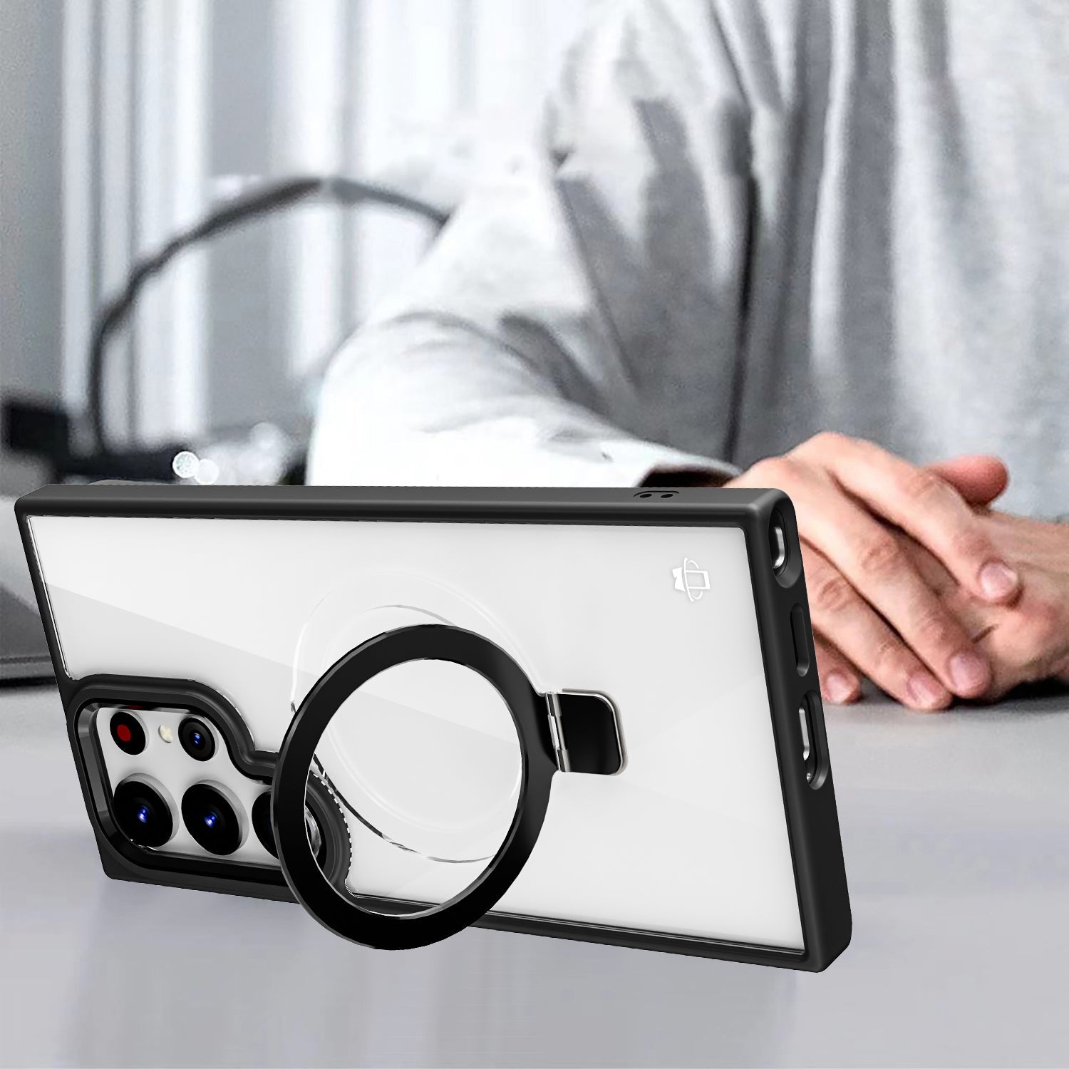 Clear Black Frame Kickstand with Magnetic Compatibility for Samsung Galaxy S24 with package