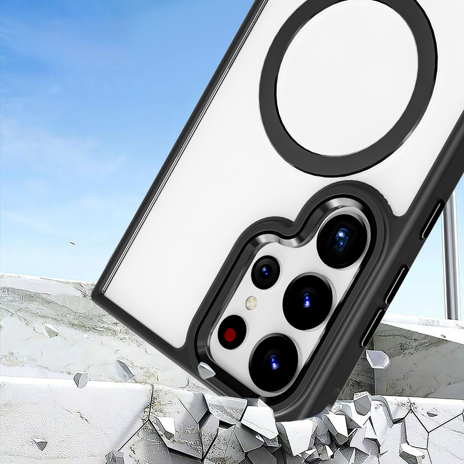 Clear Black Frame Kickstand with Magnetic Compatibility for Samsung Galaxy S25 Plus with package