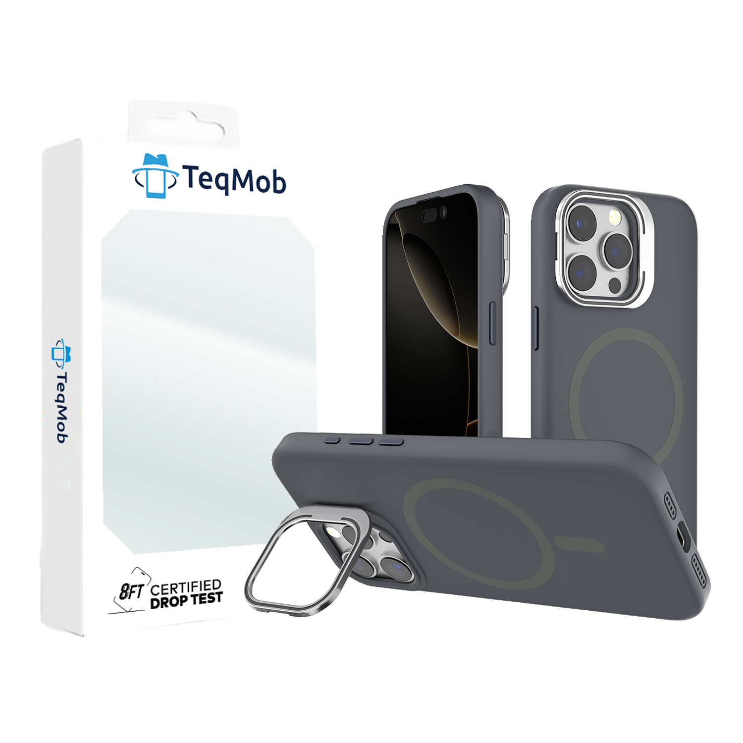 Gray Silicone Camera Kickstand with Magnetic Compatibility for iPhone 16 6.1 with package