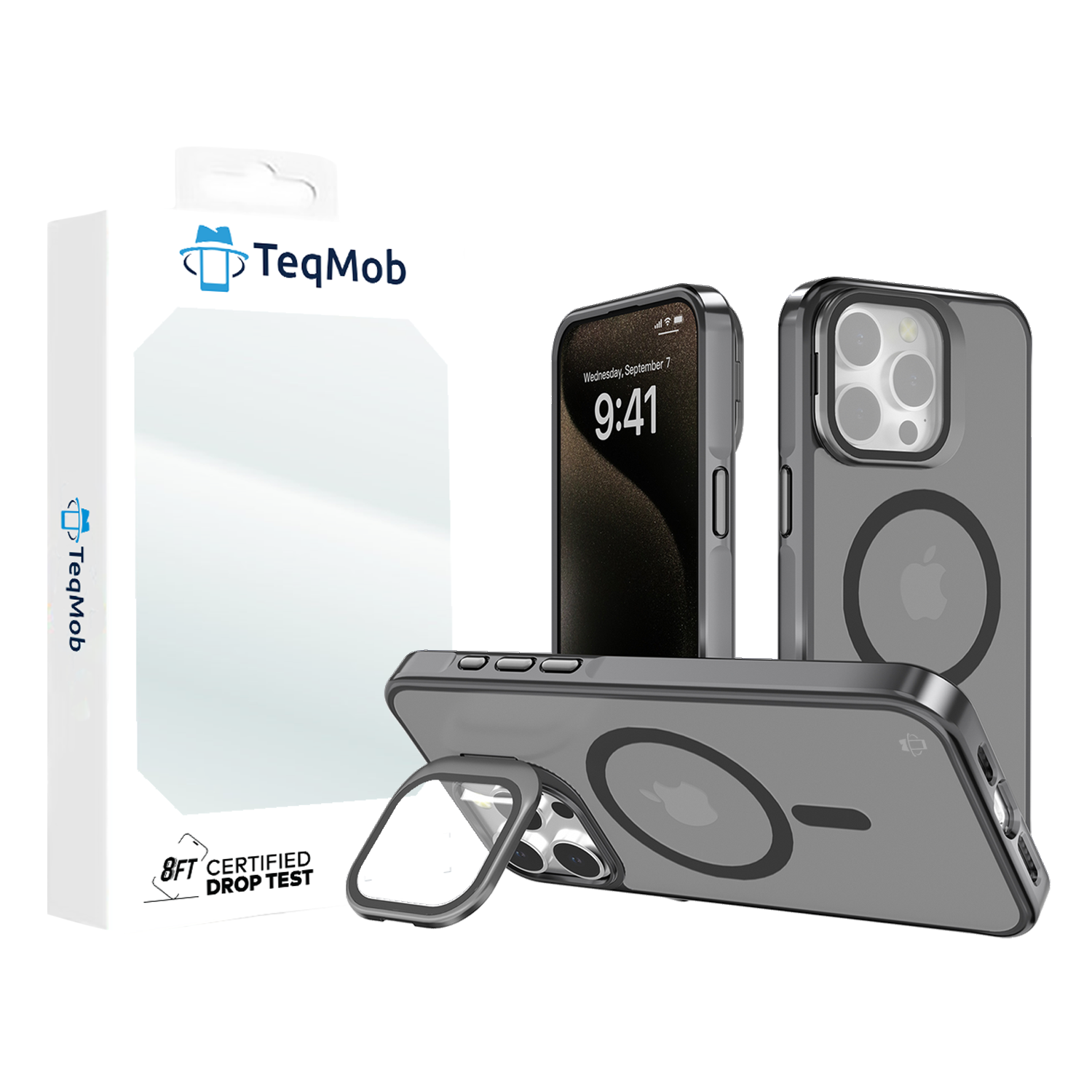 Gray Smoked Camera Kickstand Case with Built-In Glass Camera protector and Magnetic Compatibility for iPhone 16 Plus with package