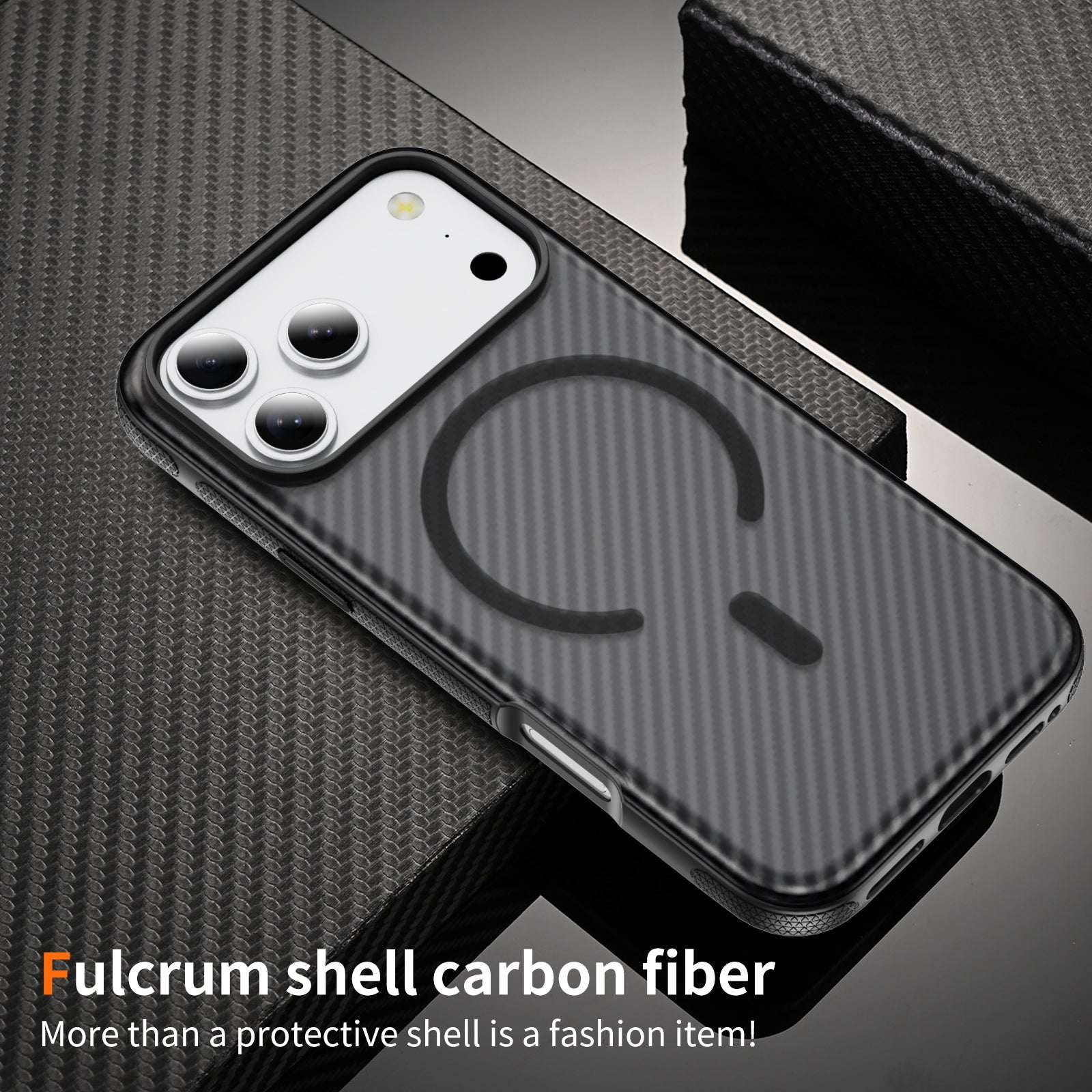 Black Magnetic Hard Shell Carbon Fiber Case for iPhone 17 Pro Max