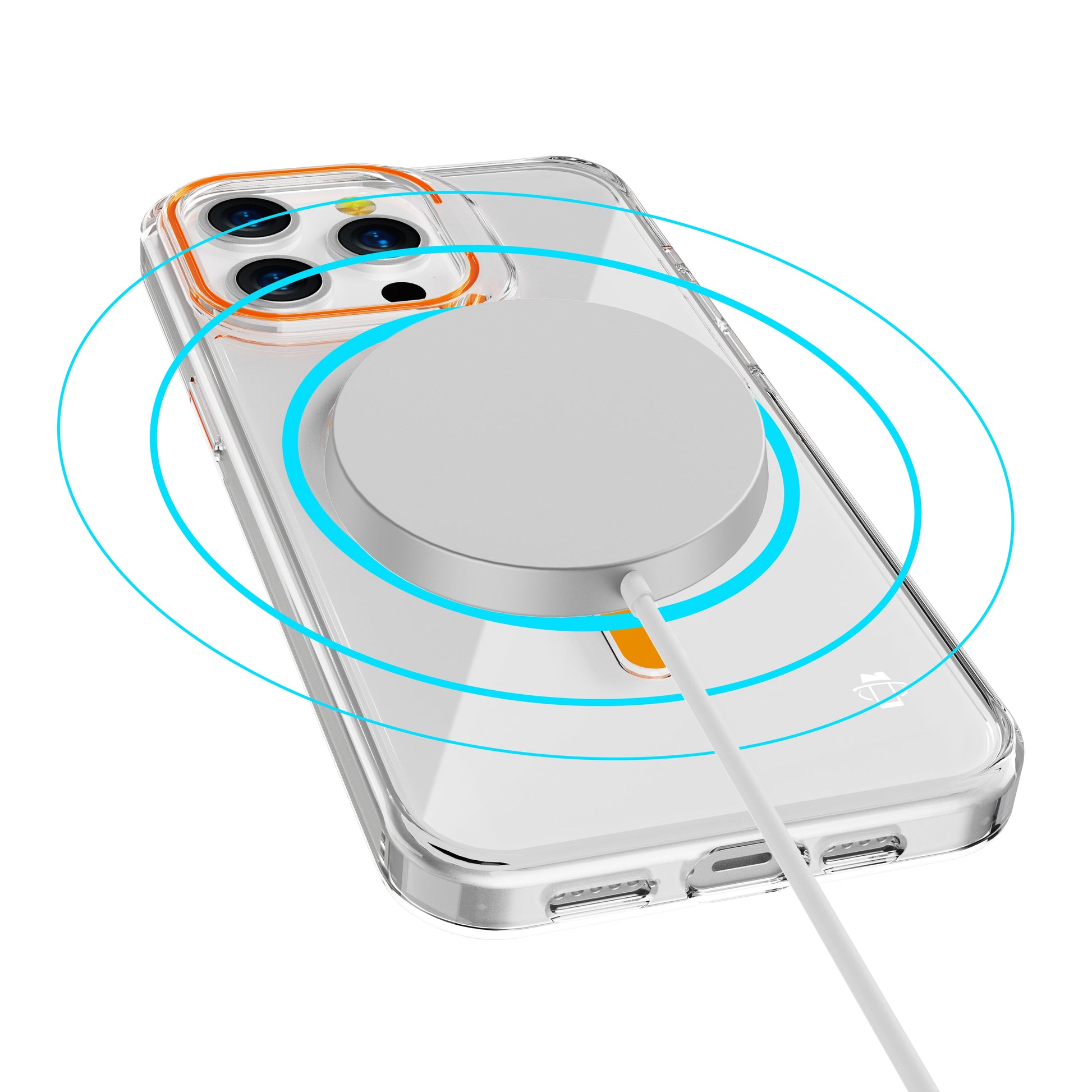 Orange Anti-Yellowing Hard Clear Magnetic Case for iPhone 16 6.1