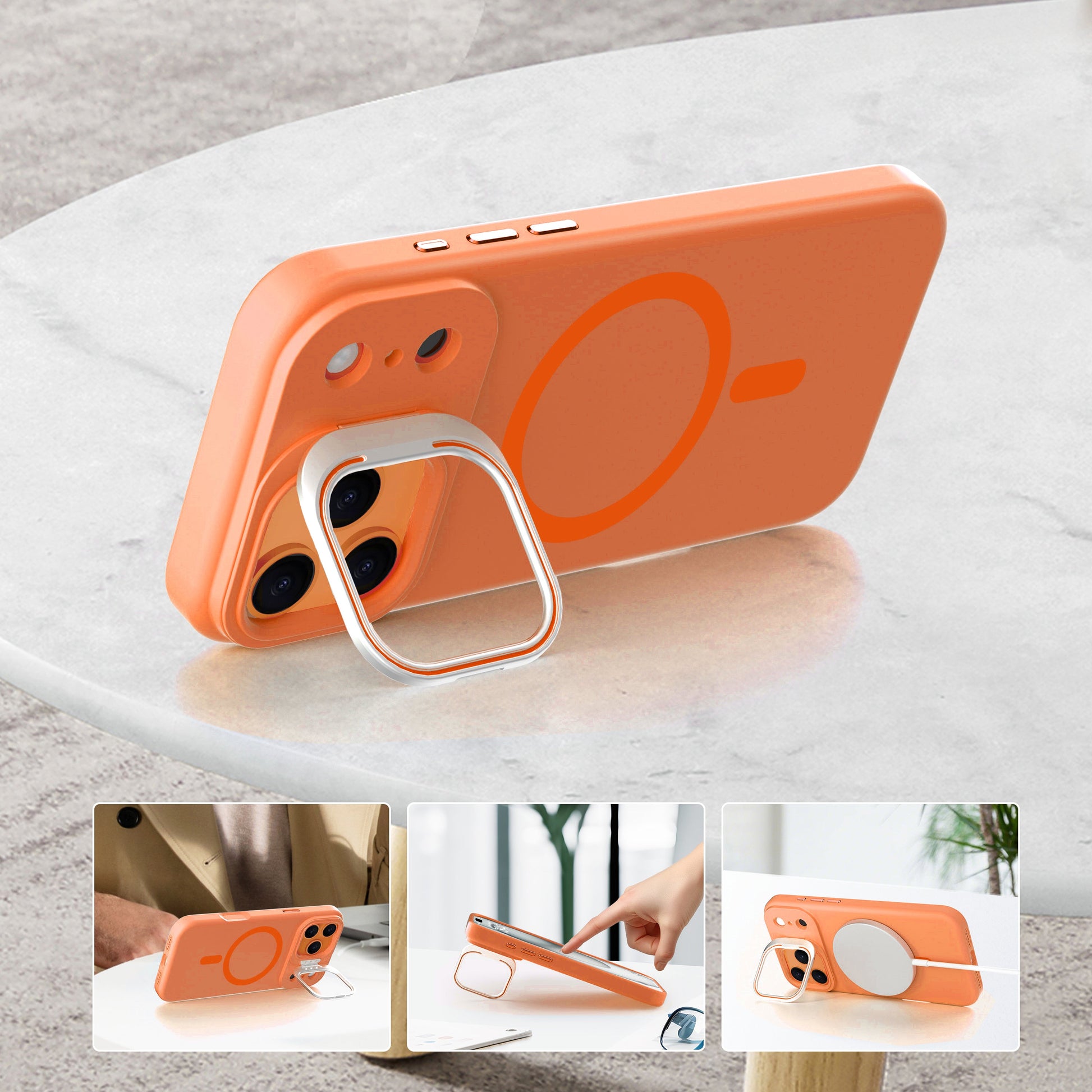 Orange Silicone Camera Kickstand with Magnetic Compatibility for iPhone 17 Pro Max with package