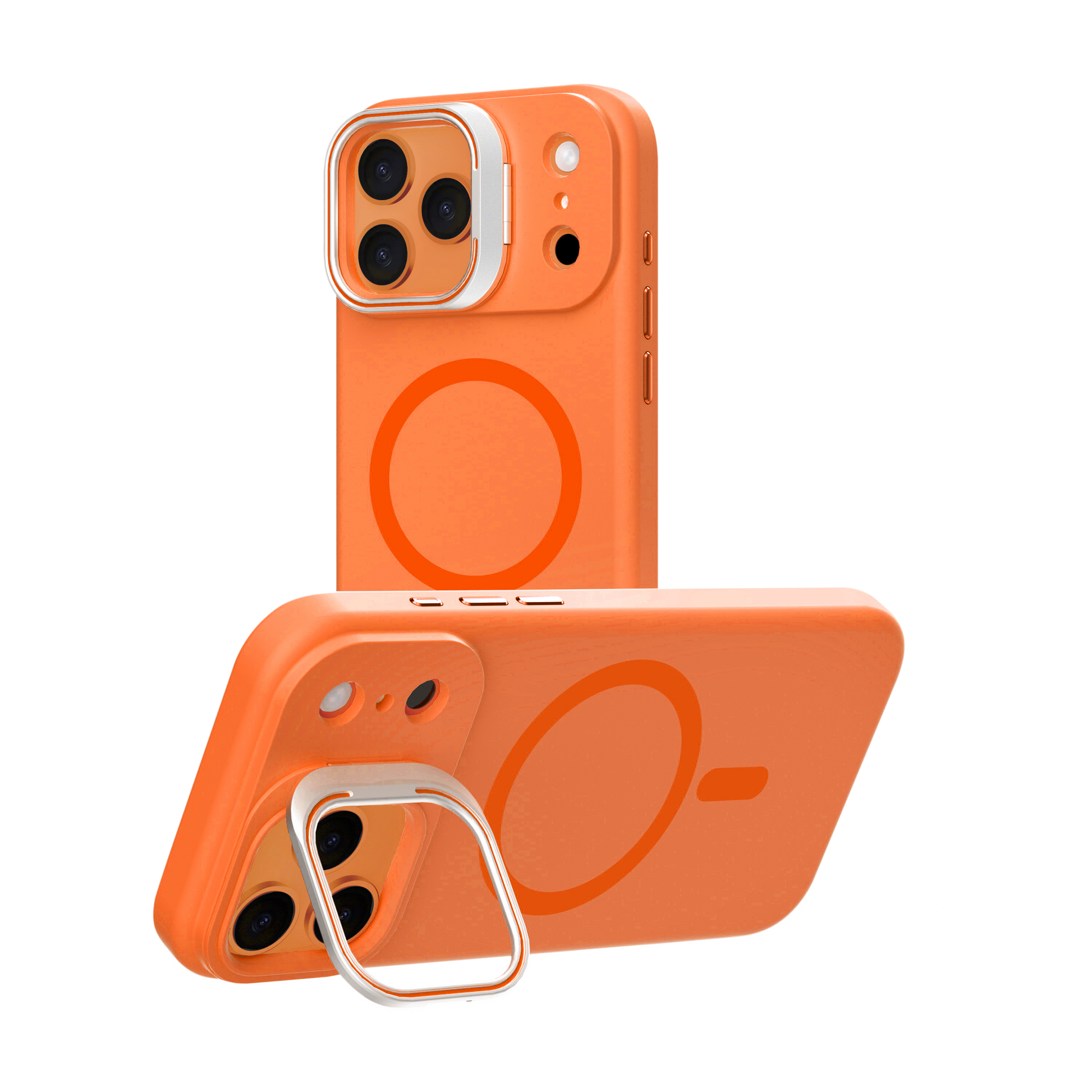 Orange Silicone Camera Kickstand with Magnetic Compatibility for iPhone 17 Pro with package