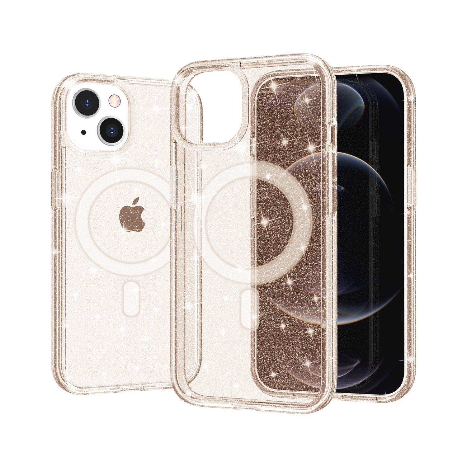 Rose Gold Magnetic Compatible Glitter TPU Bumper for iPhone 16 Plus
